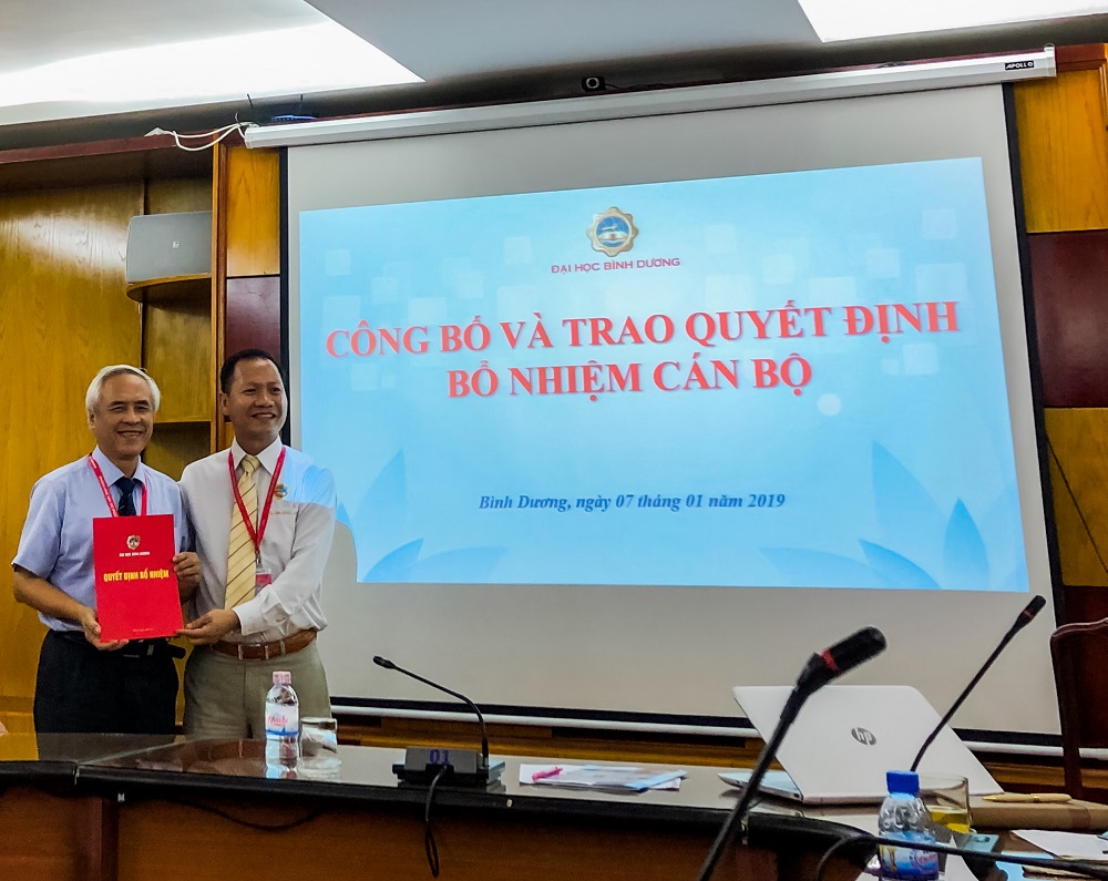 Sáng ngày 07/01, tại phòng A1, Trường Đại học Bình Dương đã diễn ra Lễ công bố và trao Quyết định bổ nhiệm Quyền Trưởng khoa Ngoại ngữ và Trưởng khoa Xây dựng.